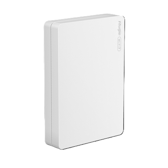 BE3600 dual-band wall-mount Wi-Fi 7 access point. High throughput with 4 spatial streams. 1 x 100/1000/2500BASE-T port with auto-negotiation. 4 x 10/100/1000BASE-T ports. Unified networking and management via Ruijie Cloud and Ruijie Reyee App. Maximum power consumption 15 W. support IEEE 802.3af/at-compliant power supply.