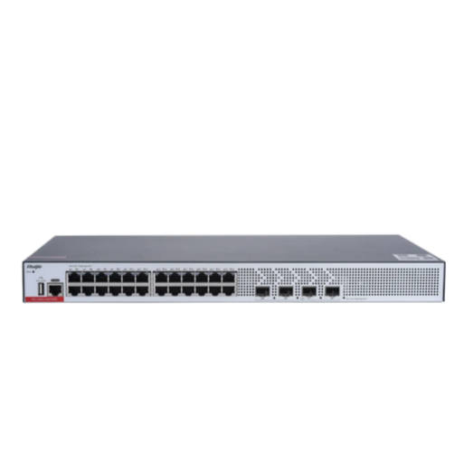 - Fixed service ports 24 x 10/100/1000BASE-T ports, supporting PoE/PoE+, 4 x 1GE/10GE SFP+ ports