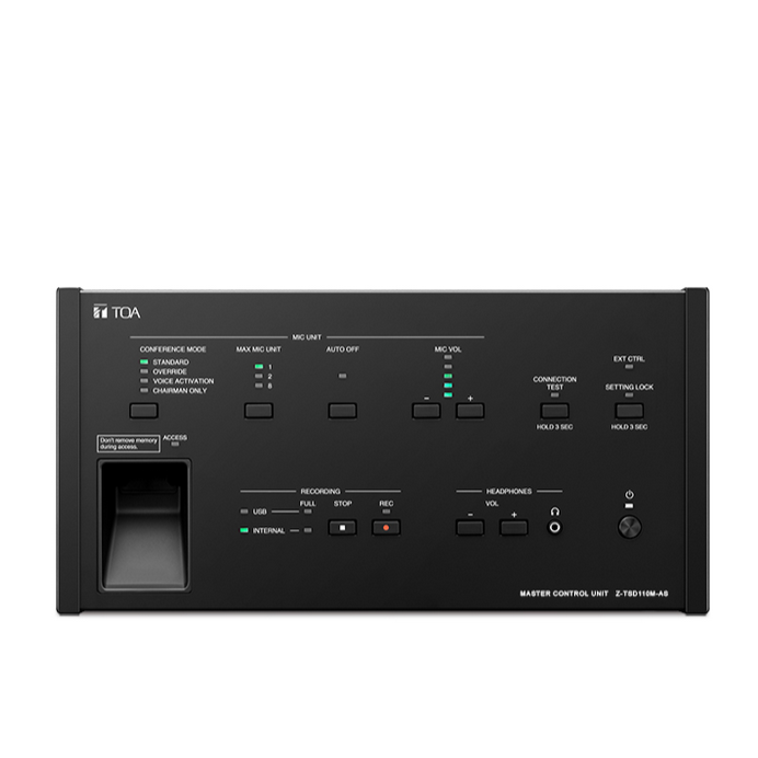 Unit Kontrol Master Z-TSD110-M-AS dari Sistem Konferensi Digital TOA dirancang untuk digunakan melalui koneksi sederhana ke unit Ketua dan Delegasi menggunakan kabel CAT5e STP LAN. Unit Kontrol Master ini juga dilengkapi dengan fungsi perekaman, kontrol PC (* 1), dan kemampuan konfirmasi koneksi satu sentuhan. Hingga 32 unit Chairman/Delegate dapat dihubungkan dalam konfigurasi rantai daisy sederhana. Namun, untuk ekspansi lebih lanjut, hingga 5 unit TS-D1000-SU Sub Control dapat ditambahkan ke sistem, sehingga memungkinkan untuk menghubungkan sebanyak 246 unit Ketua / Delegasi dalam satu sistem konferensi yang terintegrasi penuh. Koneksi ke PC memungkinkan input dan output audio selama pertemuan dan konferensi Web, memberikan peserta dengan audio yang jelas dan mudah didengar.