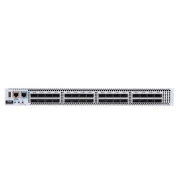 RG-S6510-32CQ chassis, with 32 x 100G QSFP28 ports, 2 x power module slots, and 5 x fan module slots. The chassis is equipped with two power modules (RG-PA550I-F) and five fan modules (M1HFAN I-F).