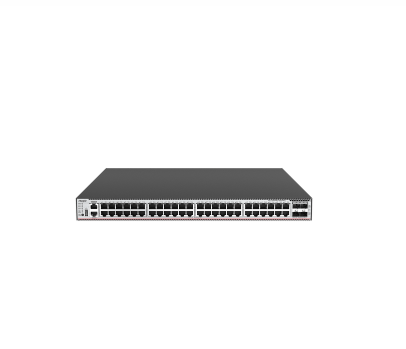48 x 10/100/1000 Mbps electrical ports with auto-negotiation, 4 x 1GE/10GE SFP+ ports, support PoE/PoE+,1 x expansion slot, ,2 built-in fixed fans, 2 x power supply module slots (at least one RG-PA600I-P-F/RG-PA1000I-P-F power module needed.)