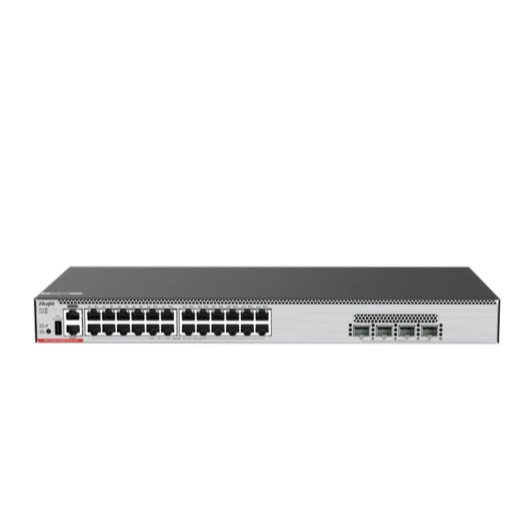 - Fixed service port 24 x 100/1000/2.5G/5GBASE-T ports, supporting PoE/PoE+/PoE++. 4 x 10GE/25GE SFP28 ports